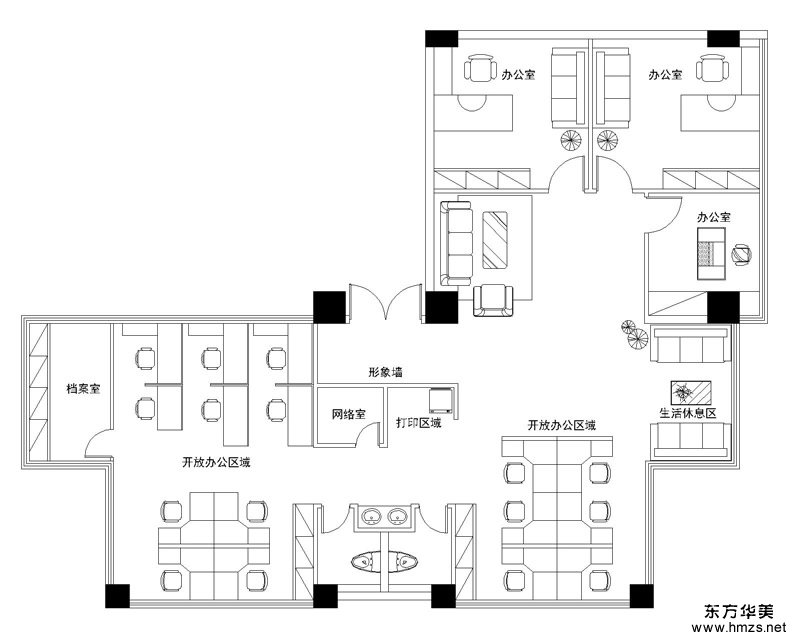 ▄設(shè)計需求: 甲方是個很務(wù)實并且很有品味的人,在設(shè)計過程中,我們的設(shè)計師除了考慮本項目的位置環(huán)境,同時還融入客戶特點,體現(xiàn)主人的性格,主人的作風,體現(xiàn)其中的文化。一個敞開的空間通過洽談室巧妙的分割成兩個獨立的辦公區(qū)。